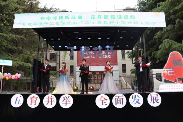 为深入学习贯彻宣传党的二十大精神和习近平总书记关于弘扬中华优秀传统文化系列重要讲话精神,培养青年学子高尚的人文素养和道德情操,进一步发挥品牌校园文化活动的育人功能,5月5日晚,bevictor伟德以“物电吟诗听风雅 花开毓苑诵词韵”为主题的第21届“丁香花开”诗词文化节在云亭校区和美广场举行,活动吸引众多学子齐聚台下,一品诗词之美,领略经典魅力。校团委书记杨庆、公司党委副书记高天、班主任、辅导员及各年级员工代表参加活动。