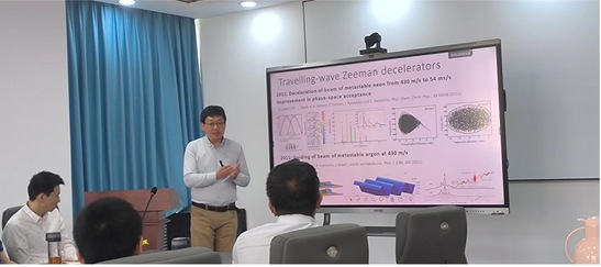 张栋栋副教授在报告中首先介绍了基于Stark效应和Zeeman效应的减速器是产生冷分子的重要技术手段,在分子碰撞、精密测量、分子囚禁以及进一步冷却等方面都有重要的应用。接着,报告了张栋栋副教授团队提出了新的分子减速操作方案来提高Stark减速器的减速效率,其成果可以应用到中性分子囚禁的研究中,并且将中性分子在分子阱中的寿命提高到了分钟量级,为研究低温下分子碰撞反应奠定了基础。