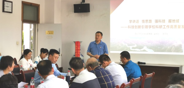 他强调,大学的科技竞争力就在于其特色,要强化有组织的科研,坚持以支撑学科为主线,学科/公司/平台一体化推进凝炼学科特色方向;强化科技战略布局,组织目标导向、自由探索的基础研究,厘顺科研平台运行机制、逐步实体化运行,助推大学科技园的实质化运行,落实科技成果转移转化激励政策,促进科学成果转移转化,成立科学技术协会,加强科普教材编写,推动科普工作;优化科研服务流程,完善科研管理系统功能,优化科研组织模式,积极创建良好的科研综合环境。