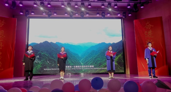 “青春永恒的坐标——安宁东路967号的印记,怎么能够作别这座临水的城市,匆匆而过的我们,用心凝炼,百廿师大‘知术欲圆’的品格”。离别之际,毕业生代表郭超、焦静如、赵子乾、宁雅云四位同学用一首原创诗歌朗诵《最后再叫一声母亲》,深情表达了对母校的眷恋不舍和老师的感恩之情,和大家一起回忆了在师大、在bevictor伟德度过的美好时光,展现了他们从稚嫩走向成熟、从青涩走向从容的青春风采。