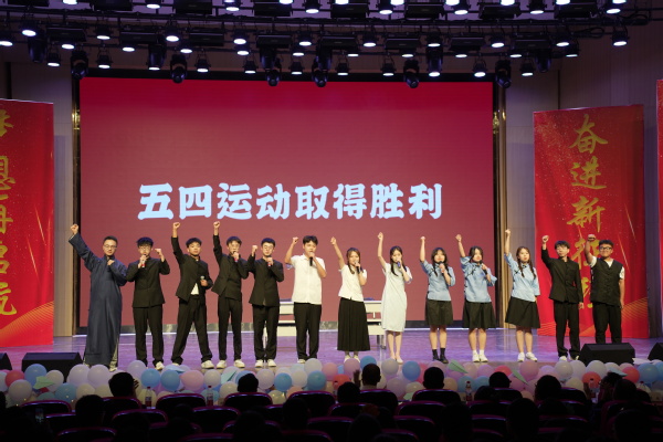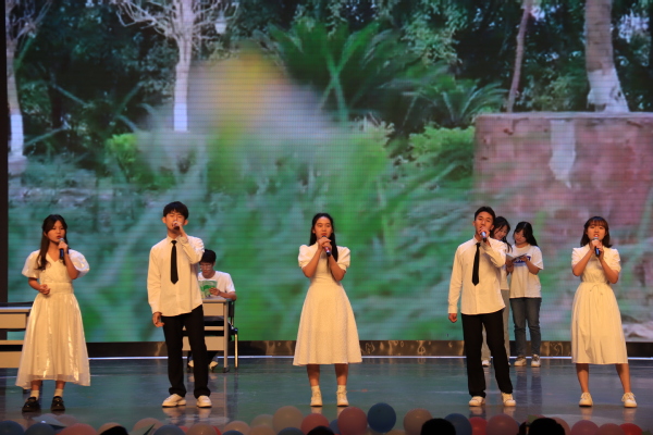“我的校园在黄河岸上,这儿歌声阵阵、书声琅琅,你的精神鼓励我们奔向远方……”晚会在悠扬动听的校歌中拉下帷幕。