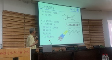 吴重庆教授在报告中首先介绍了利用多模光纤传输单模光纤信号存在的问题,在模分复用系统中广泛使用少模光纤,由于光纤的连接处不严格对准,同样会引起模式耦合,功率重新分配。随后,吴老师介绍了其课题组从理论上研究了多段多模光纤连接时,会引起新的模耦合,从而影响系统的性能的问题,得出了定量的公式。最后,吴老师指出,与 Rsoft 公司的软件和 Optisystm 软件不同,他们是先在理论上得出相关公式,然后利用 Matlab 进行计算,经试验基本吻合。