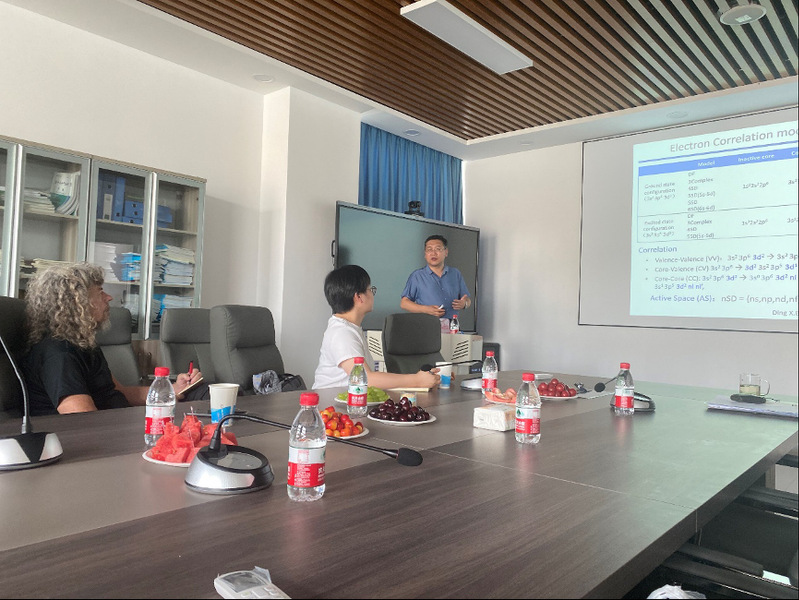 在本次学术交流会中,张凌研究员介绍了其课题组为“人造太阳”EAST装置研制的多套高Z杂质诊断系统,并介绍了不同实验条件下钨光谱观测和识别、钨杂质输运行为和控制的最新研究进展。Darío M. Mitnik 教授介绍了其发展的碰撞辐射模型方法,及其在EAST杂质离子诊断中的应用。会后,两位专家参观了原子分子物理与功能材料甘肃省重点实验室,探讨了进一步的合作方案。下午,丁晓彬教授也介绍了其课题组近年来的研究成果,并针对未来的合作进行了深入的讨论。