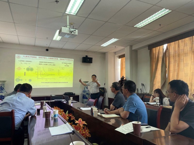 何峰教授在报告中介绍了超快强场物理研究概述,接着重点介绍了他们在氢分子离子解离和电离、氢分子的电离和解离以及处理大分子超快动力学的含时多组态自洽场理论等方面的研究进展。