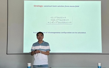 报告上,苗兵教授以卡西米尔力和费曼路径积分为切入点,详细介绍了他在精确计算方面开展的最新研究工作,并解释了如何通过评估与研究问题相关的Hessian算子的波动或涨落行列式,来精确量化涨落效应。苗兵教授指出,这一概念在相变理论中具有广泛的应用,不仅可以提供超越平均场理论的涨落能量,还能揭示大偏差理论以外的随机波动的主要贡献。随后苗兵教授深入阐述了在计算波动行列式时可能涉及的算子光谱问题。此外,还详细讨论了在难以求解算子光谱的情况下,用于计算一维理论中波动行列式的几种精确方法,这些方法包括基于复分析原理的等辐积分法、基于路径积分的Pauli-van Vleck-Morette方法、随机动力学中的Feynman-Kacformula,以及微分算子中的广义Gelfand-Yaglom定理。