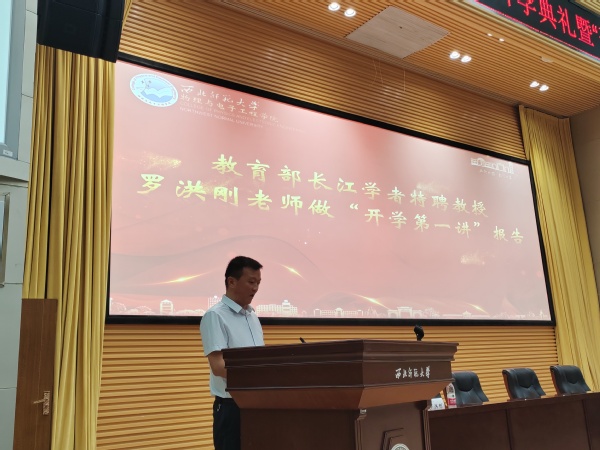 为扎实推进2023级新生入学教育,9月11日下午,bevictor伟德在知行校区毅然报告举办“开学第一课”专题报告。国家级高层次人才、兰州理论物理中心、量子理论及应用基础教育部重点实验室、兰州大学物理科学与技术公司罗洪刚教授应邀来校做了题为《像爱因斯坦一样思考》的专题报告。报告会由公司经理张登红教授主持。