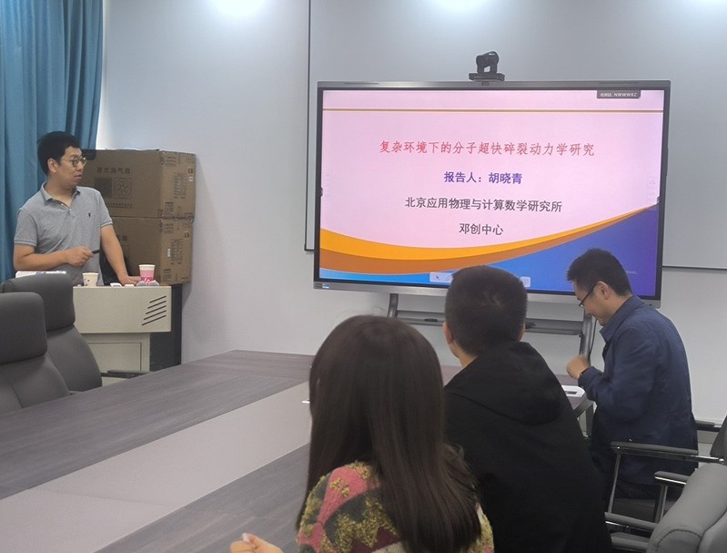胡晓青副研究员的报告从复杂多原子分子及其离子的碎裂动力学是当前原子分子物理领域的热点出发,介绍了高激发态分子离子第一性原理计算方法,半经典分子轨道碎裂动力学模拟方法、全量子含时波包演化方法以及考虑光与原子相互作用的从中性开始演化的含时波包演化方法。结合近期的一些实验,应用这些方法在孤立分子的碎裂动力学及团簇环境、液体环境取得了重要成果。报告会后胡晓青副研究员同公司相关教师、研究生进行了座谈交流,分享了学习、生活方面的心得体会,并就学科研究方向、合作等方面的问题进行了深入交流。