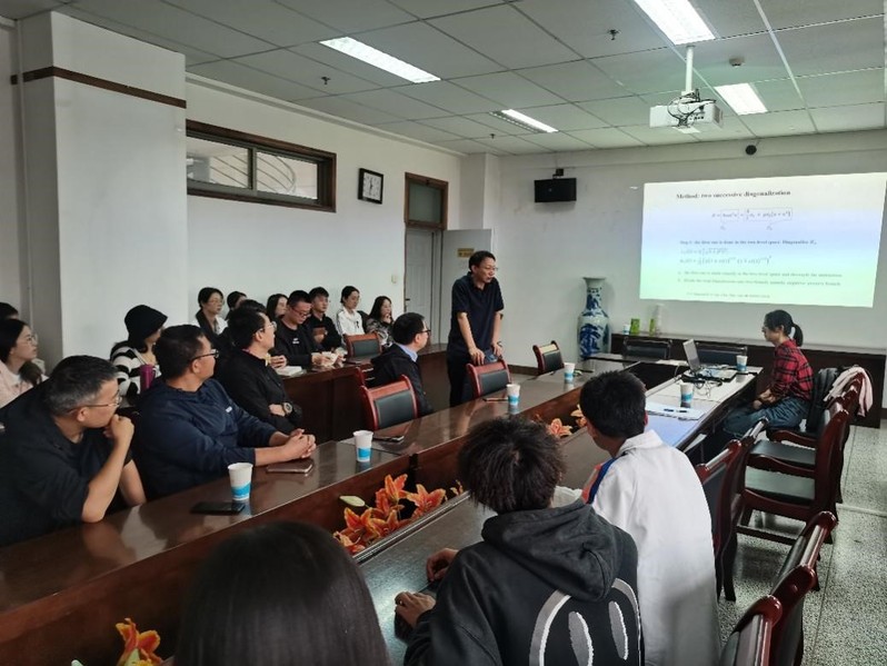 2023年9月22日,应bevictor伟德、甘肃省原子分子物理与功能材料重点实验室和国家基金委理论物理学术交流平台邀请邀请,兰州大学物理科学与技术公司罗洪刚教授和课题组在读博士研究生杨贇彤来公司访问交流,杨贇彤作了题为《Pattern Description of Phase Transition (相变的图案语言)》的学术报告,报告会由理论物理研究所所长豆福全教授主持,相关学科教师、研究生共50余人参加报告会。