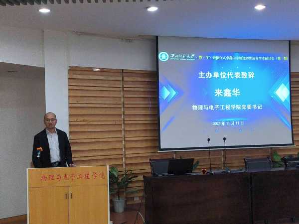 来鑫华在致辞中强调,百年大计,教育为本,教育大计,教师为本,举办“教•学•研融合式”卓越中学物理团队培育系列学术研讨会,是公司贯彻落实全国研究生教育大会精神的一个重要举措,旨在通过系列学术活动,为同学们牢固树立“躬耕教坛、强国有我”的志向和抱负,大力弘扬教育家精神,为学科教学(物理)研究生(含本硕一体研究生)综合素养、能力水平赋能提效,着力提升卓越中学物理团队培养水平,全面提高公司产品质量,努力打造“卓越中学教师”西师品牌,全面推动各项事业的高质量发展,为一流学科、一流公司、一流大学建设再立新功。