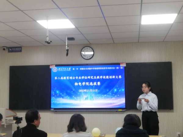 在分三组开展的学科教学(物理)研究生(含本硕一体研究生)教学活动展示暨教学技能创新大赛公司选拔赛评比中,15位参赛选手立足学科特点和研究方向,分别作了精彩教学片段的展示。18位校内外导师进行了细致点评和耐心指导。展示活动由硕士研究生张勤勤、倪富霞、霍育苗分别主持。