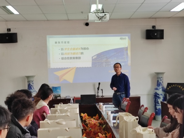宣讲会上,胡文兵介绍了兰州新东方公司的发展历程、业务板块、人才结构、晋升通道、专业能力提升途径、薪酬待遇以及福利保障等情况,与同学们就规划职业目标、找准职业定位、开展就业实践等问题进行了交流。