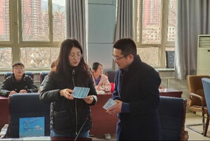 公司辅导员白晨、王贝贝老师向兰炼一中分发公司2024年毕业生资源材料
