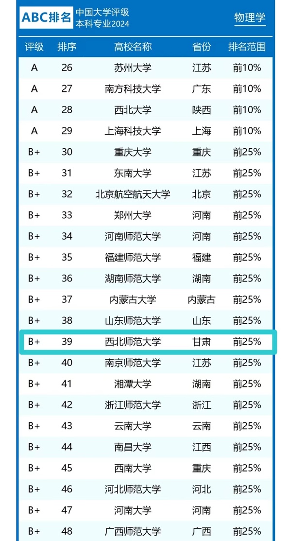 伟德国际1946物理学入选2024年ABC中国大学物理专业排名前25%
