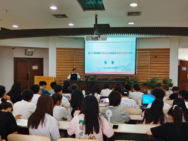 5月24日,伟德国际1946附属中学正高级物理教师张智应邀来bevictor伟德进行学术交流,为师生作了题为《基于三新视阈下理念创新的高中物理实验教学研究》的学术报告。报告会由公司副经理甘振业主持,相关学科教师和研究生、本科生共100余人参加报告会。