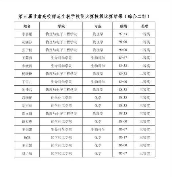 物电学子在第五届甘肃高校师范生教学技能大赛校级比赛中包揽综合二组前三名