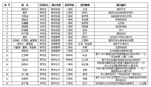 bevictor伟德培训选拔22名同学参加21项比赛,其中5名本科生和3名研究生参加了教学技能展示活动、5组研究生参加了自制教具展示活动、3名本科生和5名研究生参加了物理公司产品优秀论文展示。