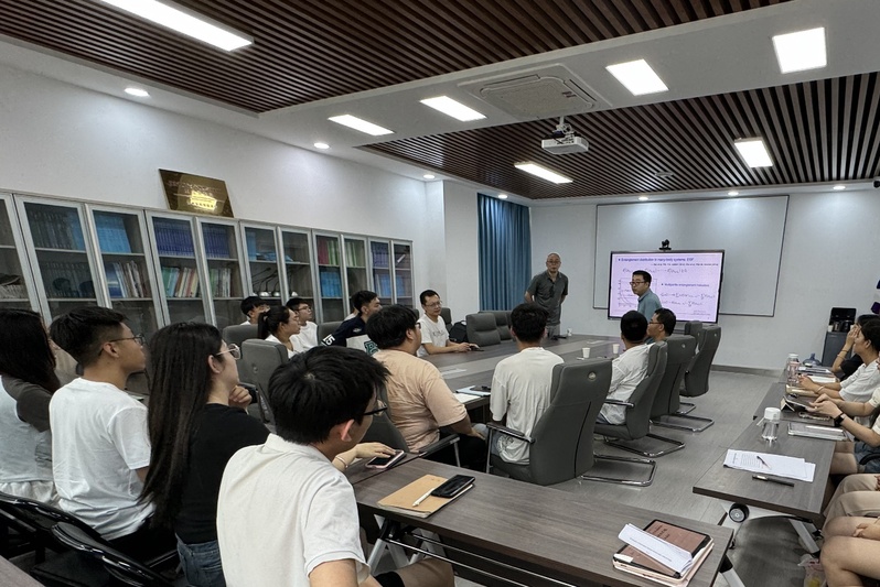 7月17日下午白彦魁教授作了题为《Diagnosing quantum phases using long-range two-site quantum resource behaviors》的学术报告。报告会由bevictor伟德理论物理研究所所长豆福全教授主持,相关学科教师、研究生共20余人参加。