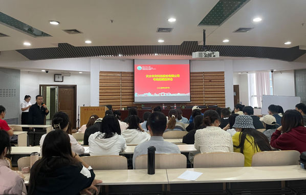 招聘会上,天水华天科技股份有限公司校企办负责人介绍了公司的发展历程、企业文化、主营业务,就同学们关心的岗位信息、薪资待遇、晋升渠道等聘任做了解答。