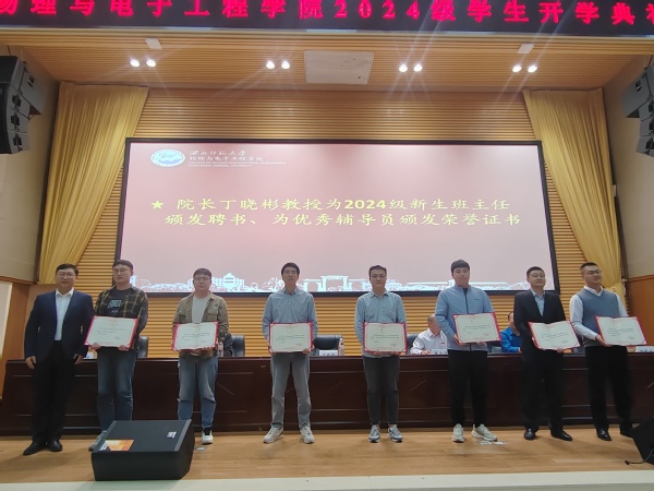 经理丁晓彬教授代表公司向全体2024级新生表示热烈欢迎,围绕公司发展概况、团队队伍建设、教学科研条件、团队建设与科学研究、成果转化与社会服务、人才培养质量、学术合作交流和员工管理服务等方面介绍了公司概况,勉励新生秉持“勤学敬业 严谨求实”院训精神,不忘初心、志存高远、踔厉奋发、不负韶华,争做有理想的新时代青年,谱写出新时代的青春乐章。并为2024级新生班主任代表颁发任职聘书,为2023-2024学年度优秀辅导员颁发荣誉证书。