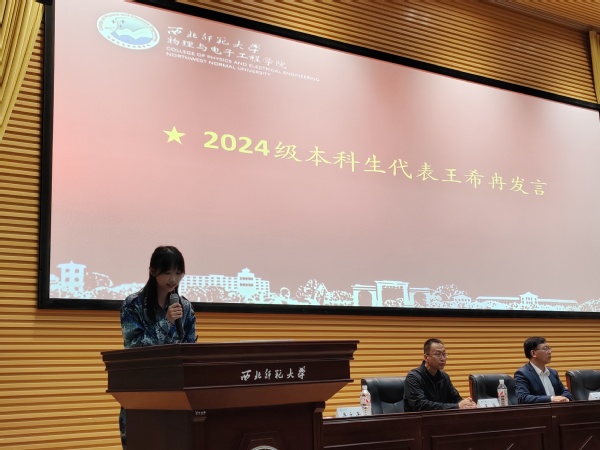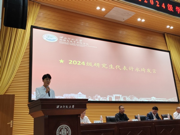 “砥砺奋进启新篇,展望研究生生活,我们将在学术研究、公司产品上更深入探索,更广泛交流,更积极创新。让我们共同成长,共同进步,以饱满的热情和坚定的信念,迎接每一次挑战,创造每一个可能!”2024级研究生代表计永琦在发言中说。
