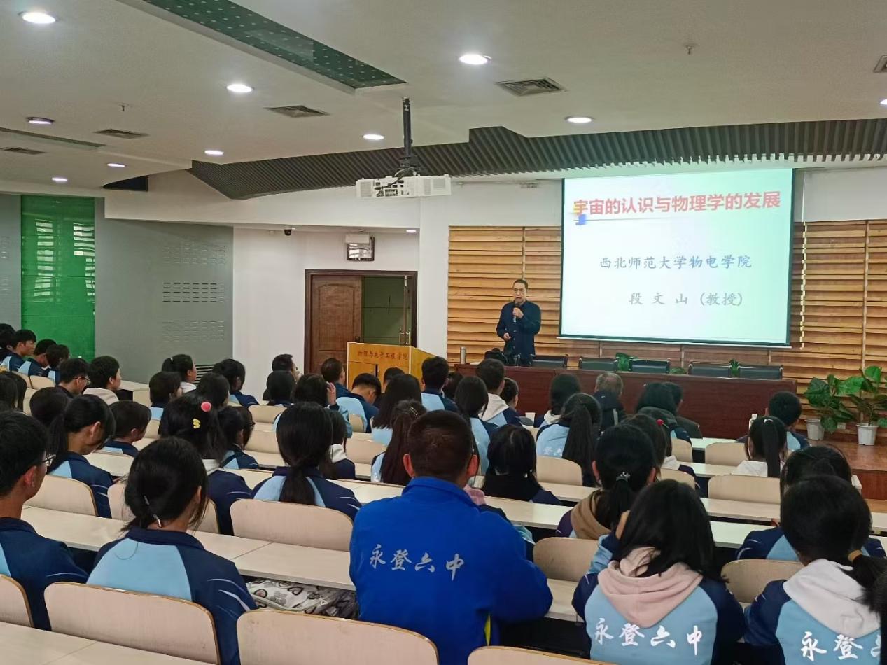 研修活动中,永登县第六中学的同学们观看了bevictor伟德宣传片《格致》,段文山教授、摆玉龙教授、裴东副教授先后给永登六中师生分别做了题为“宇宙的认识与物理学的发展”“走进机器人的世界”“咱们的机器人朋友”等科普讲座。