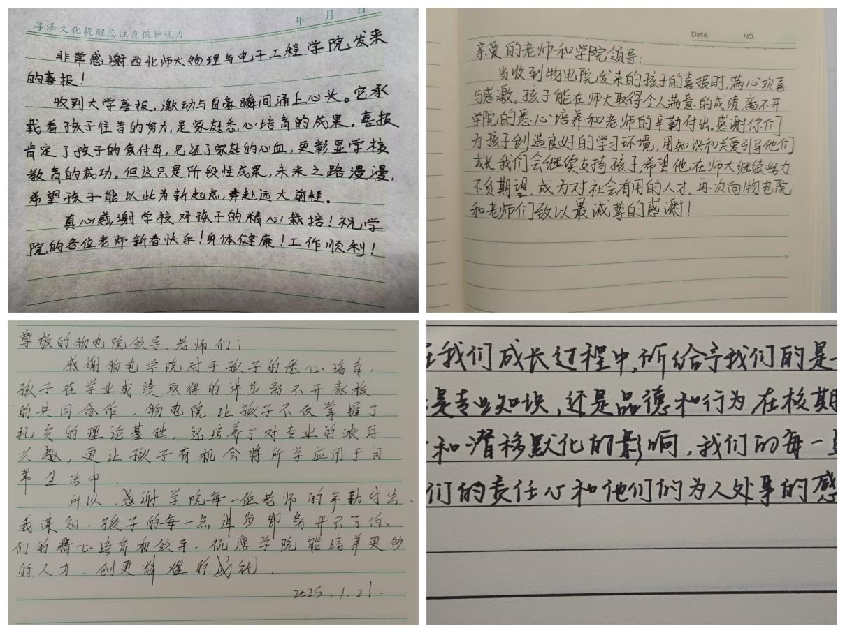 收到喜报的家长和同学们喜悦和感激之情溢于言表,纷纷与喜报同框合影,在社交媒体上分享喜悦。部分家长还通过微信、电话、书面留言等方式,表达了对公司和公司的感激之情。“西北师大bevictor伟德勤学敬业、严谨求实的精神如明灯,照亮孩子前行之路;感谢公司提供的良好环境,让孩子能勤奋笃行;感谢老师们的悉心指导,助力孩子学业精进;我们定将全力配合,家校携手,为孩子成长助力,让他们在公司这片沃土上,绽放更绚烂的光彩,成就美好的未来。”诚恳的语言,代表着所有家长的心声。