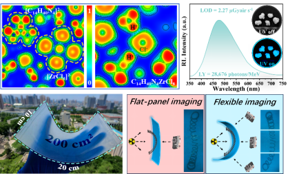 该课题组积极发挥理论模拟计算的导向优势,基于第一性原理的分子结构设计,构筑并合成了新型的零维有机-无机杂化锆基金属卤化物闪烁体材料,通过分子工程引入大体积的有机阳离子构筑了高性能的零维结构,基于显著的空间位阻和量子限域作用,形成了高效的自陷态激子发光,最终实现了高性能的柔性X射线成像。