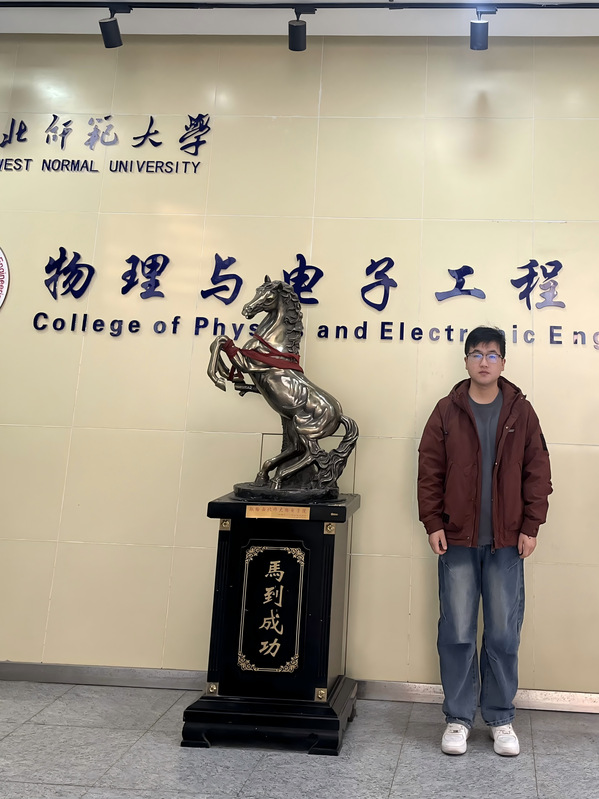王欣怡,2023级凝聚态物理专业硕士研究生,研究方向为新能源光电材料与器件。在读期间,发表SCI学术论文1篇;参与实施国家自然科学基金地区项目1项、甘肃省自然基金项目1项、2025年甘肃省高校研究生“创新之星”项目1项;荣获2023-2024学年硕士研究生“国家奖学金”。
