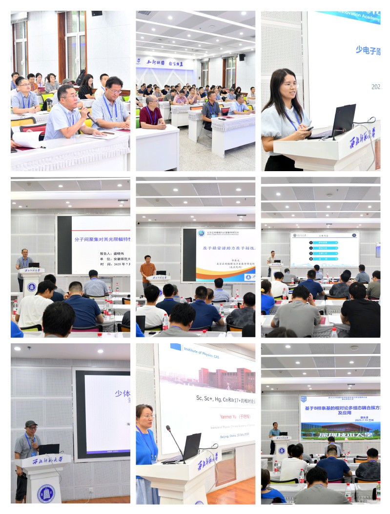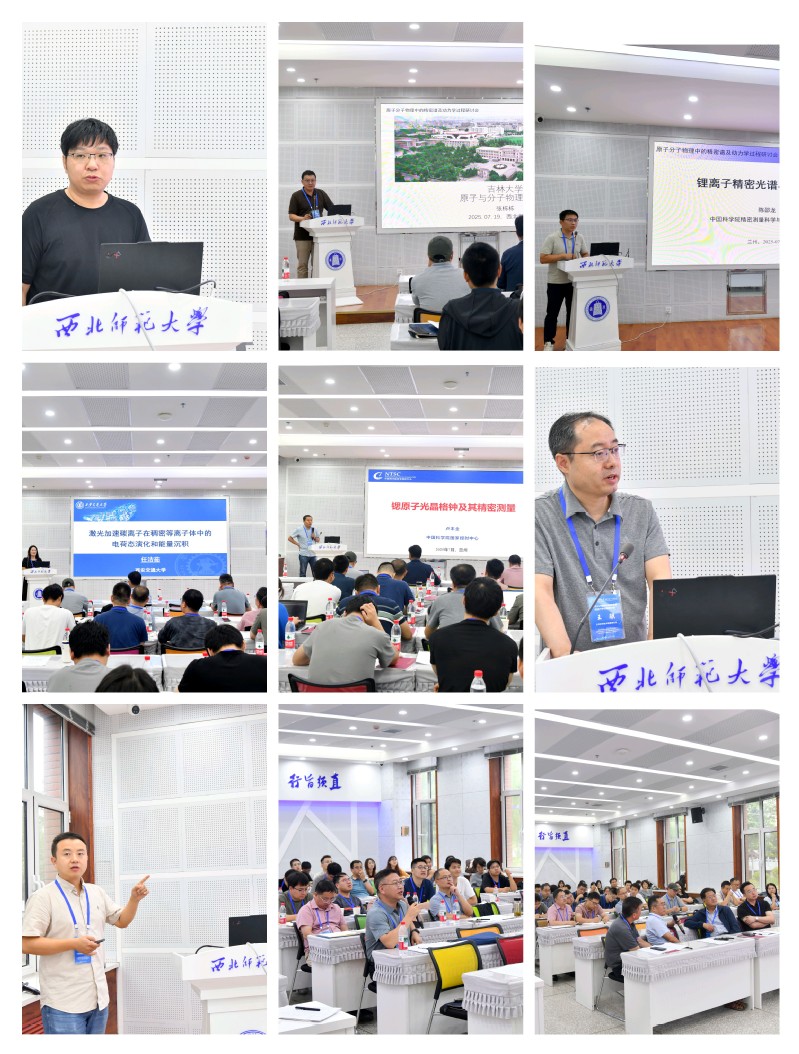 会议期间,中国科公司精密测量科学与技术创新研究院黄垚研究员和陈邵龙博士、中国科公司近代物理研究所汶伟强研究员、兰州空间技术物理研究所王骥研究员、中国科公司国家授时中心卢本全副研究员、吉林大学张栋栋副教授、西安交通大学任洁茹教授等专家学者介绍了不确定度4.6E-19的钙离子光频标、基于惠州大科学装置CiADS的缪原子精密测量、星载原子钟技术研究现状、锶原子光晶格钟及其精密测量、电离过程中的共振和旋轨效应、激光加速碳离子在稠密等离子体中的电荷态演化和能损、锂离子精密光谱与核结构信息等实验方面的最新研究进展。