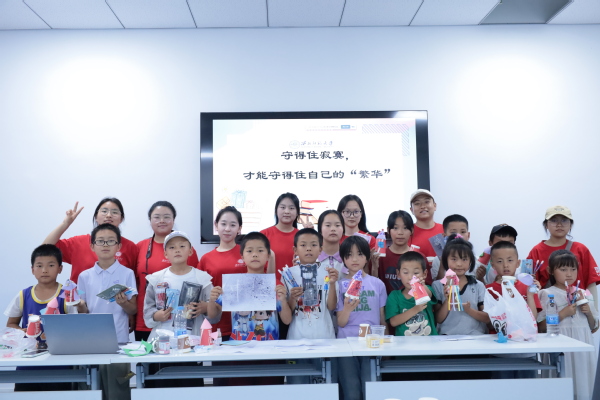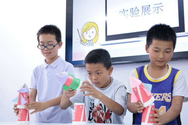 从阿基米德原理到牛顿万有引力,从《墨经》中的科学原理到神舟十九号载人飞船的成功发射,从世界物理学家的经典故事到中国科学家不屈不挠的奋斗历程,实践小分队成员付佳颖声情并茂讲述着科学家们追求真理、无畏探索的精神。而结合讲解演示的科学小实验,更是让“严谨求实、勇攀高峰”的科学精神不再是书本上的文字,而是可触可感的力量,深深触动着孩子们的心灵:“我要像科学家一样,解开更多科学秘密!”