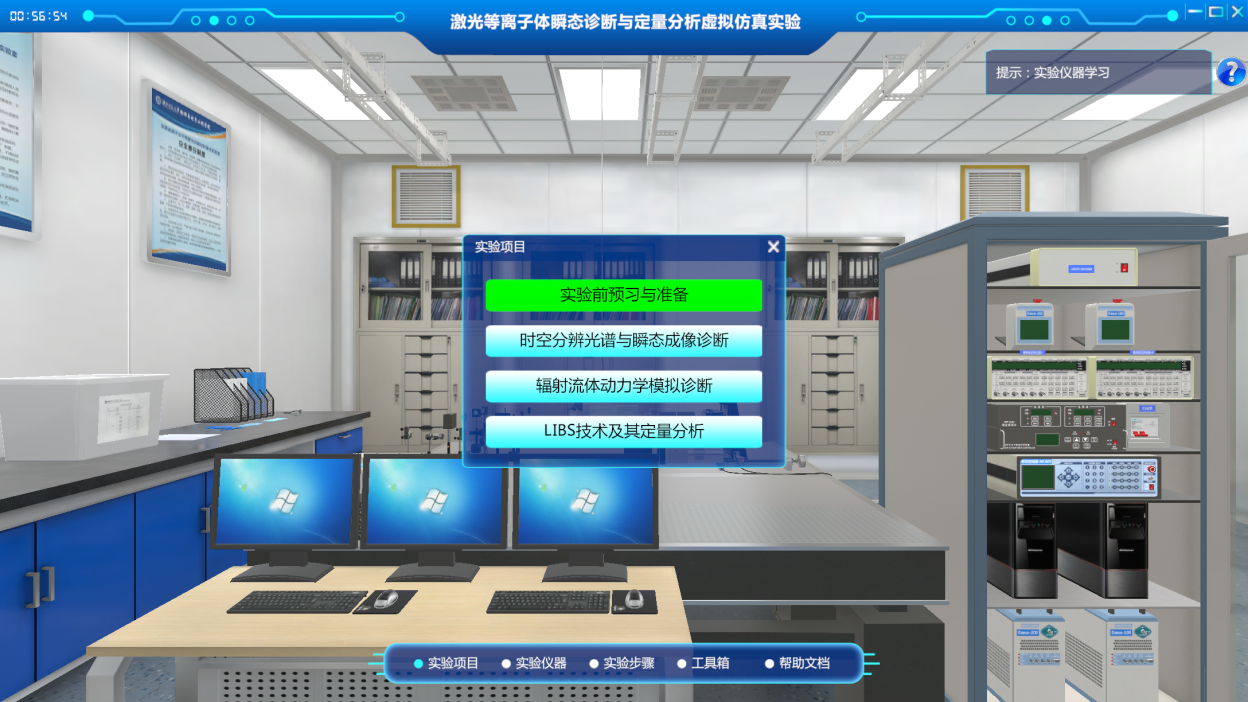 主要设备:弗兰克-赫兹实验仪、塞曼效应实验装置、法拉第效应实验系统、天文观测系统、扫描隧道探针显微镜、光学多道分析器、激光等离子体光谱实验装置、量子计算实验装置、VR实验装置以及激光等离子体瞬态诊断及定量分析虚拟仿真实验系统等百余套,总价值300余万元。